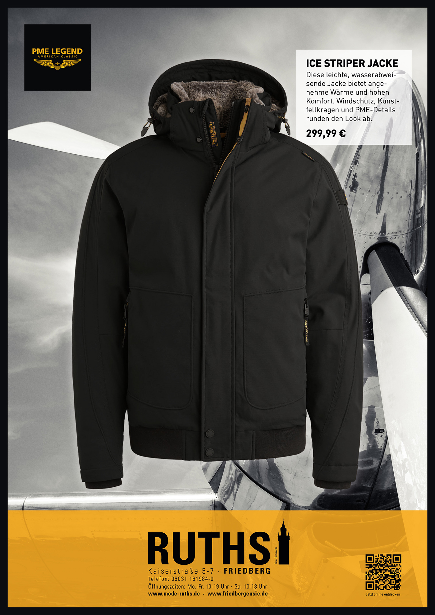 Die PME Legend Ice Striper ist von einer authentischen Fliegerjacke inspiriert und aus robustem Ripstop gefertigt. Der abnehmbare Innenkragen aus Kunstfell und die Rippbündchen sorgen zusammen mit der Tech Down‑Füllung für Wärme und Komfort. Die wasserabweisende, leichte Jacke ist mit einem Windfang mit Kinnschutz und einer abnehmbaren, verstellbaren Kapuze ausgestattet. Zwei Seitentaschen mit Reißverschluss und Fleecefutter, eine Innentasche mit Reißverschluss und eine Mesh-Innentasche bieten viel Stauraum. Die charakteristischen PME Legend‑Details runden das Design ab.