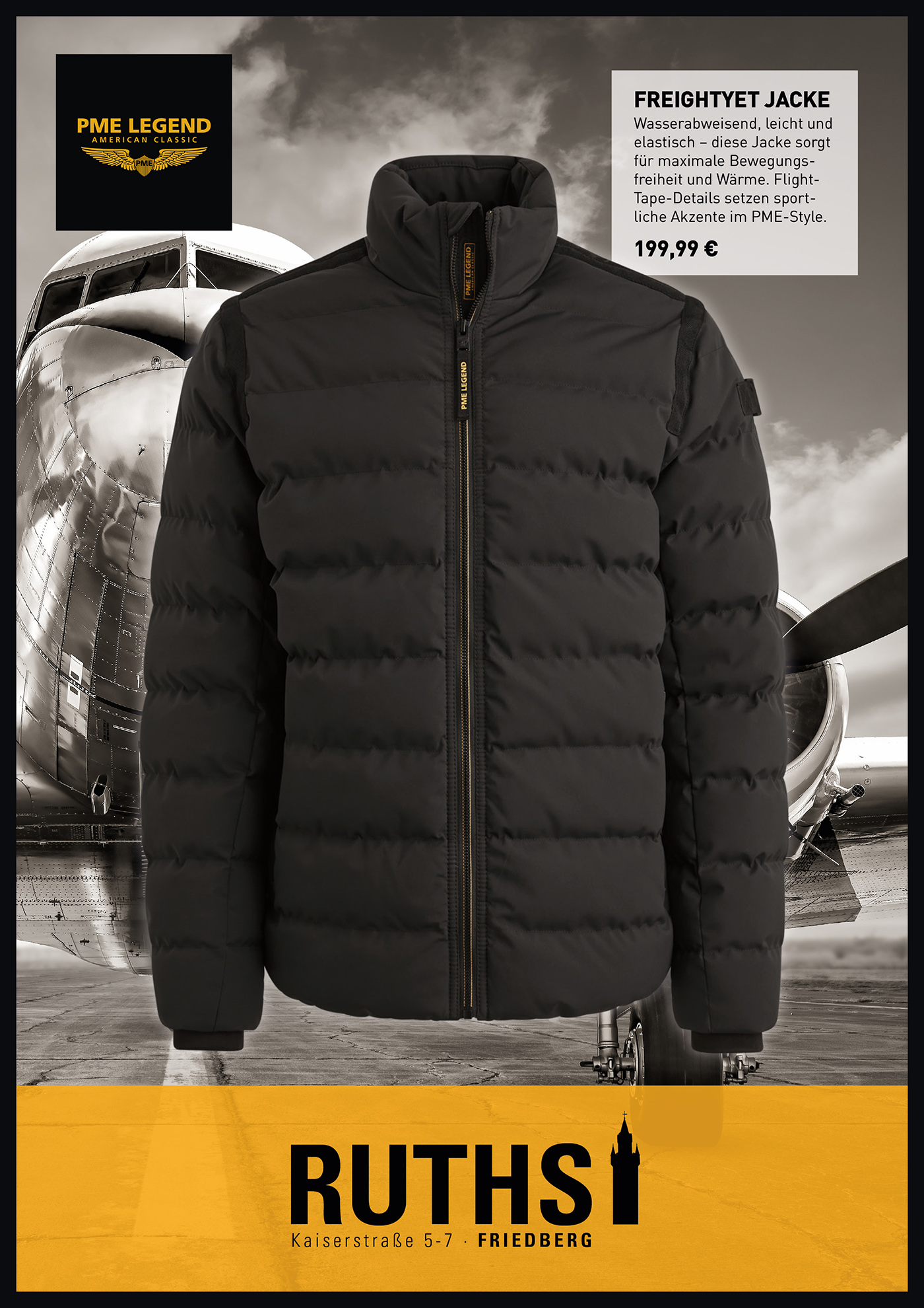 Die PME Legend Freightyet ist eine leichte, wasserabweisende Pufferjacke. Der Komfort-Stretch und die Tech Down-Füllung sorgen für viel Komfort. Elastische Abschlüsse an Bund und Ärmeln halten die Kälte fern. Die Jacke verfügt über zwei großen Seitentaschen mit Fleecefutter und Reißverschluss sowie eine Innentasche mit Reißverschluss. Die authentischen Flight-Tapes auf den Schultern und bei den Armausschnitten sorgen für den lässigen PME Legend Look.